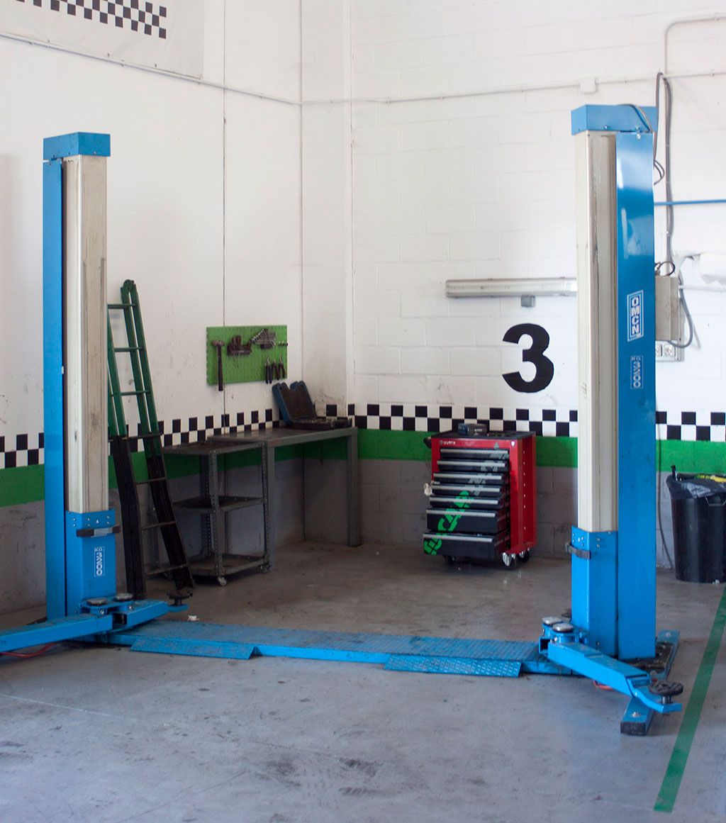 Cada box está equipado con un elevador de dos columnas y ponemos a tu disposición las herramientas necesarias.